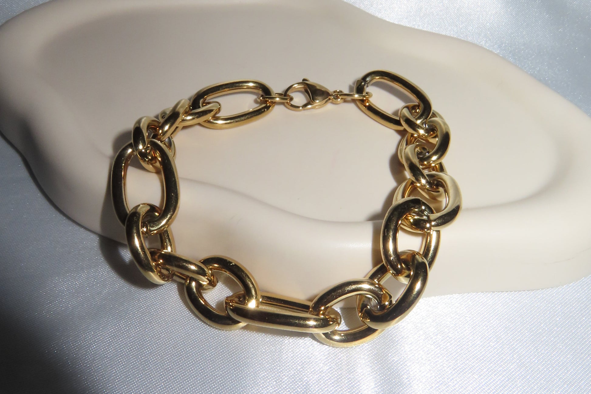 צמיד גאיה צמיד גורמט בציפוי זהב בסגנון דומיננטי ועבה, בעל נוכחות מרשימה