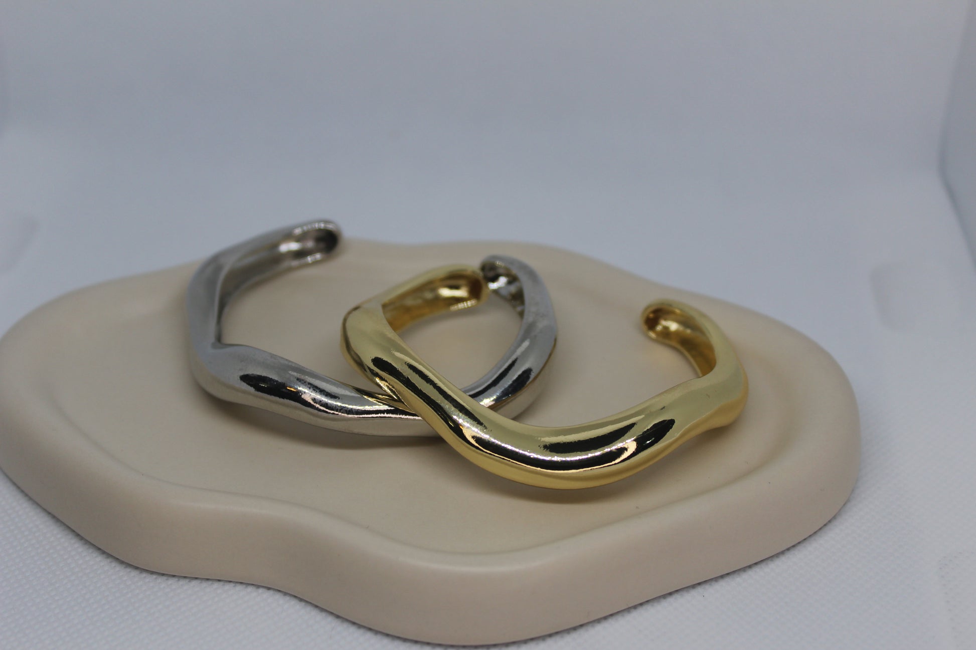 צמיד בעל נוכחות מרשימה עם עיצוב גיאומטרי טרנדי ומיוחד, מגיע בציפוי זהב וכסף