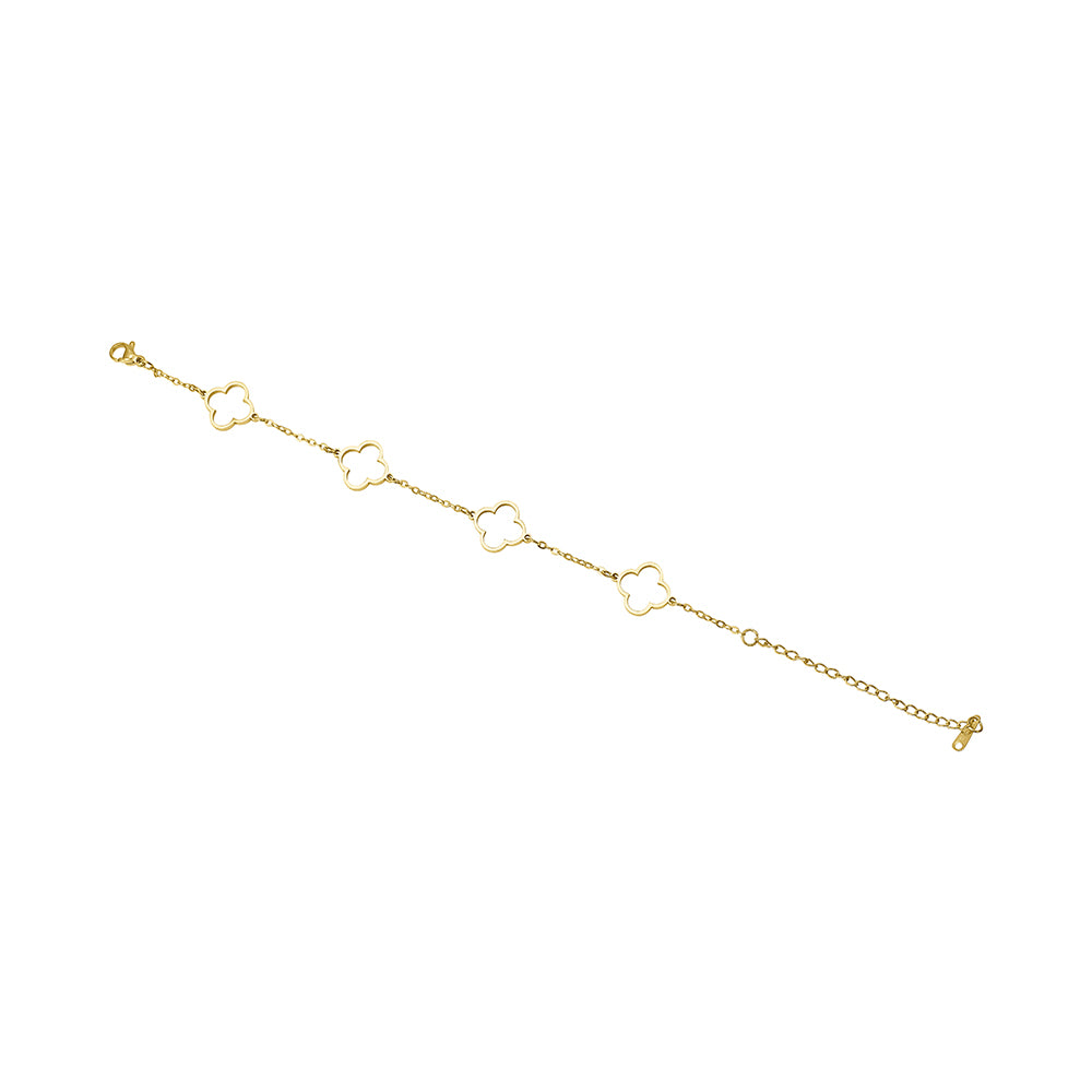צמיד תלתנים חלול (כסף וזהב)- צמיד טרנדי בעל 4 תלתנים חלולים למראה עדין ועכשווי